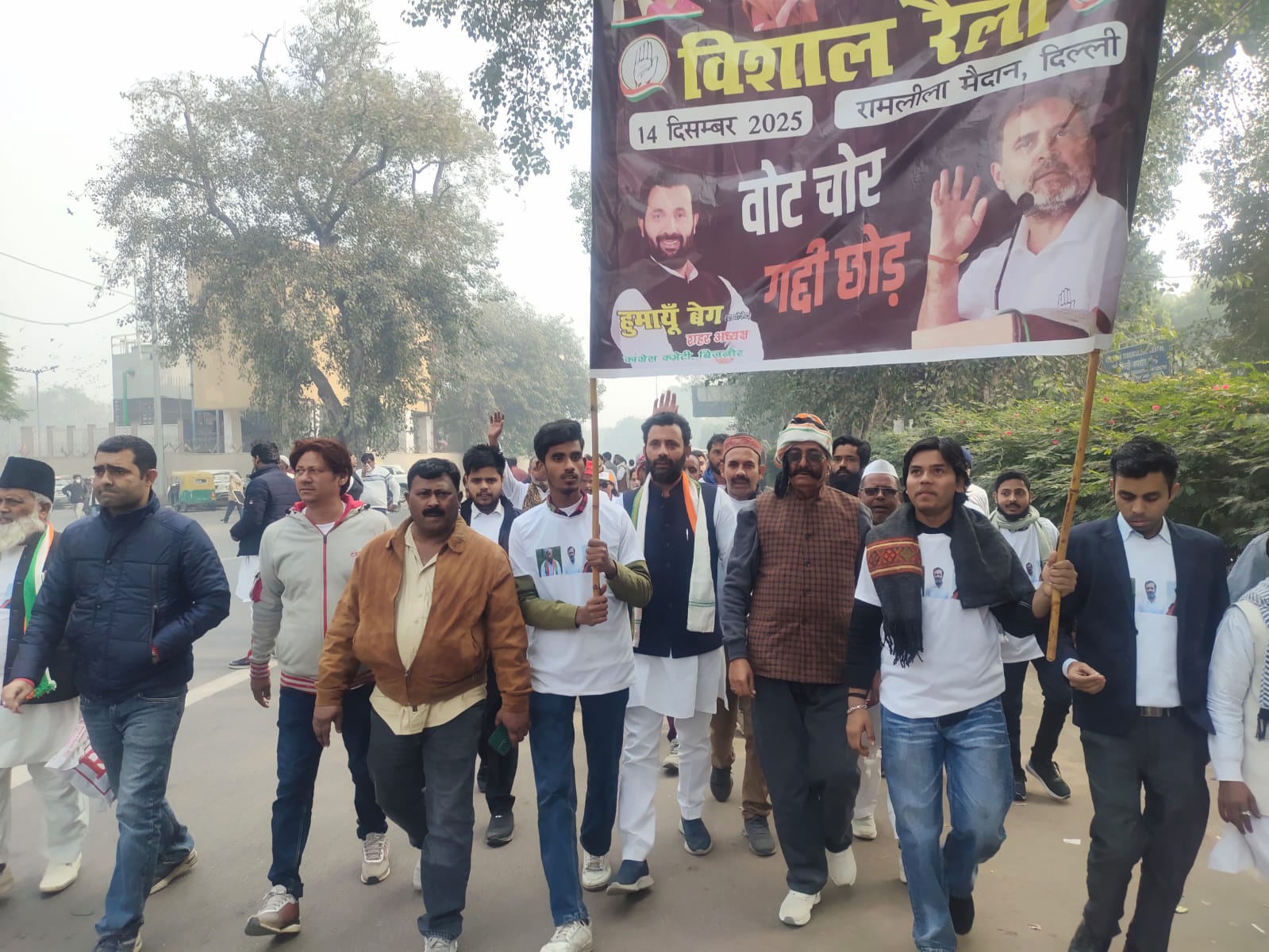 बिजनौर। अखिल भारतीय कांग्रेस कमेटी की दिल्ली रामलीला मैदान में वोट चोर गद्दी छोड़ महारैली में बिजनौर शहर अध्यक्ष हुमायूँ बेग के नेतृत्व में बिजनौर से सैकड़ों की संख्या में कार्यकर्ताओं ने दिल्ली पहुंच कर रैली में उपस्थित दर्ज कराई।