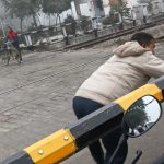 Pilibhit : खतरे से खेल रहे बाइक सवार, बंद बैरियर लांघकर पार कर रहे रेलवे ट्रैक
