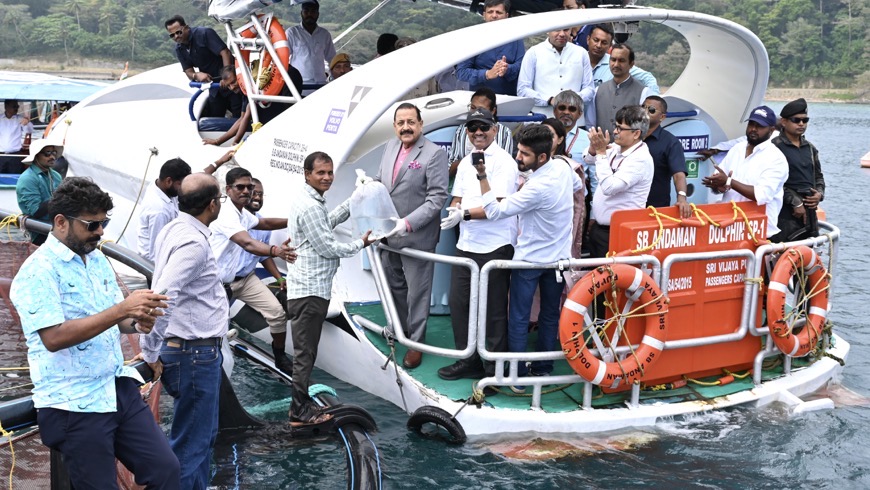 केंद्रीय मंत्री डॉ. जितेन्द्र सिंह ने रविवार को अंडमान सागर के नॉर्थ बे क्षेत्र में देश की पहली खुले समुद्र में समुद्री मछली पालन परियोजना का शुभारंभ किया। डॉ. जितेन्द्र सिंह ने कहा कि आजादी के बाद करीब 70 वर्षों तक देश की समुद्री संपदा पर अपेक्षित ध्यान नहीं दिया गया, लेकिन वर्ष 2014 के बाद सरकार की सोच बदली है और समुद्र को भी हिमालय और मुख्य भूमि की तरह आर्थिक शक्ति के रूप में देखा जा रहा है। डॉ. जितेन्द्र सिंह ने कहा कि भविष्य में इस तरह की परियोजनाओं को पब्लिक-प्राइवेट पार्टनरशिप के जरिए बड़े स्तर पर लागू किया जा सकता है, जिससे रोजगार के अवसर बढ़ेंगे और ब्लू इकॉनमी को और मजबूती मिलेगी।