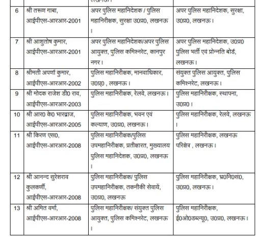 - किरन एस को केंद्रीय प्रतिनियुक्ति से वापस लाकर लखनऊ रेंज का आईजी (IG) नियुक्त किया गया है।