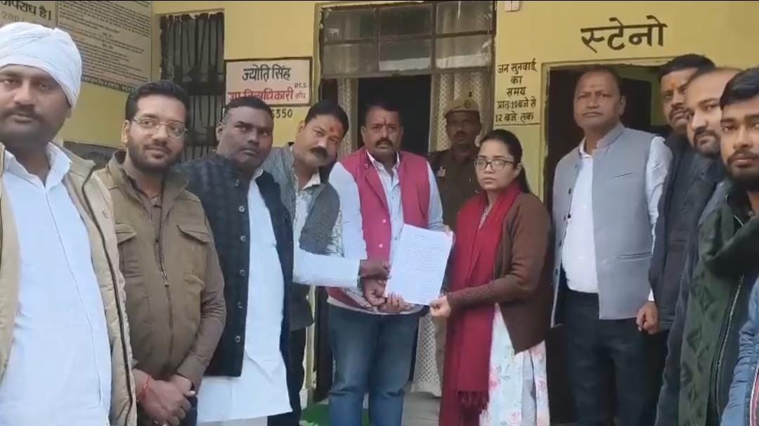 Konch, Jalaun : विश्व हिंदू परिषद/बजरंग दल के कार्यकर्ताओं ने बुधवार को उपजिलाधिकारी ज्योति सिंह को एक ज्ञापन सौंपते हुए मांग की कि दिनांक 11 जनवरी 2026 को ग्राम कुदरा में हुई गौकशी की घटना पर कठोर कार्रवाई की जाए। ज्ञापन में बताया गया कि उक्त घटना में आठ माह की गर्भवती गाय को उसके नवजात शिशु सहित बेरहमी से काटा गया। सभी गौ को माता का दर्जा देते हैं और इस जघन्य अपराध से समूचा नगर व क्षेत्र भयभीत है।