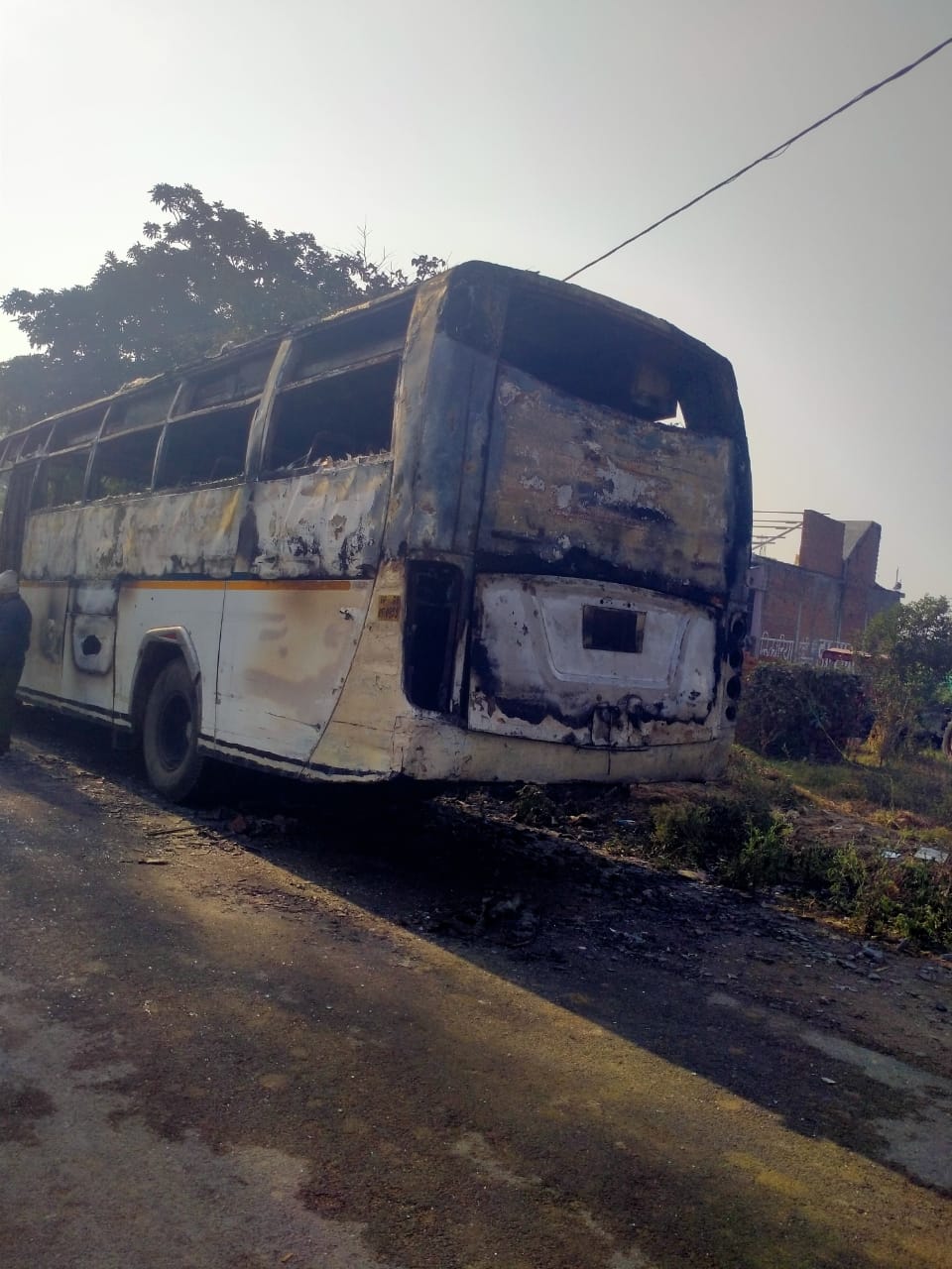 स्थानीय ग्रामीण मौके पर पहुंचे और आग बुझाने का प्रयास किया, लेकिन आग इतनी भीषण थी कि बस कुछ ही मिनटों में पूरी तरह जलकर खाक हो गई। ग्रामीणों ने तुरंत दमकल विभाग को सूचना दी। सूचना मिलते ही दमकल वाहन मौके पर पहुंचा और कड़ी मशक्कत के बाद आग पर काबू पाया। दमकल कर्मियों के अनुसार आग शॉर्ट सर्किट के कारण लगी थी। आग बुझने के बाद बस का केवल ढांचा ही शेष बचा।
