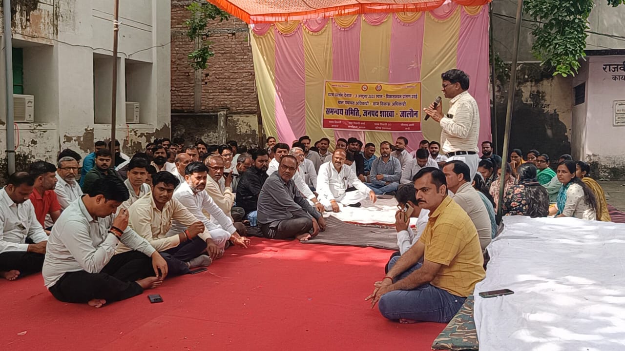 Jalaun : जालौन ग्राम पंचायत सचिवों के प्रस्तावित धरना प्रदर्शन के समर्थन में साथ आए ग्राम प्रधान, धरना प्रदर्शन जारी।