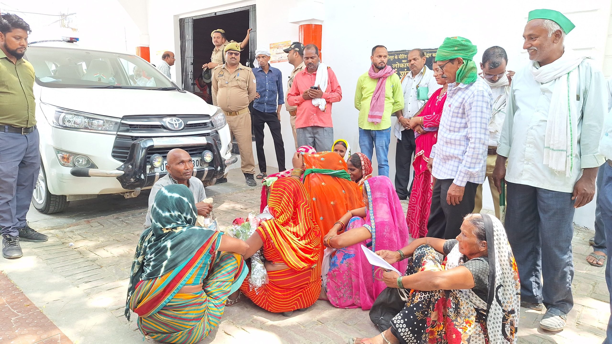 Jaunpur: अधिकारियों के चक्कर काटकर परेशान महिला ने डीएम की गाड़ी के सामने दिया धरना