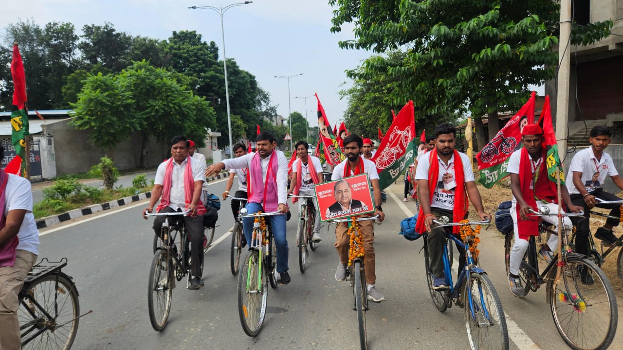 Kannauj : श्रद्धेय नेताजी मुलायम सिंह यादव समाजवादी संदेश साइकिल यात्रा 1 अक्टूबर 2025 को लखीमपुर खीरी जिले के लुधौनी से शुरू हुई। यह यात्रा लगातार जनता के बीच समाजवादी विचारधारा का प्रचार-प्रसार कर रही है। इस यात्रा का मुख्य उद्देश्य पार्टी के संस्थापक स्वर्गीय मुलायम सिंह यादव के सिद्धांतों को जन-जन तक पहुँचाना और आगामी 2027 विधानसभा चुनावों के लिए कार्यकर्ताओं में जोश और ऊर्जा भरना है। समाजवादी छात्र सभा के जिला उपाध्यक्ष शुभम यादव, आदर्श यादव (संयोजक) और दयाशंकर (संचालक) के नेतृत्व में चल रही यह यात्रा सीतापुर के पवित्र स्थल नैमिषारण्य से होते हुए अपनी ऊर्जावान गति बनाए हुए है।