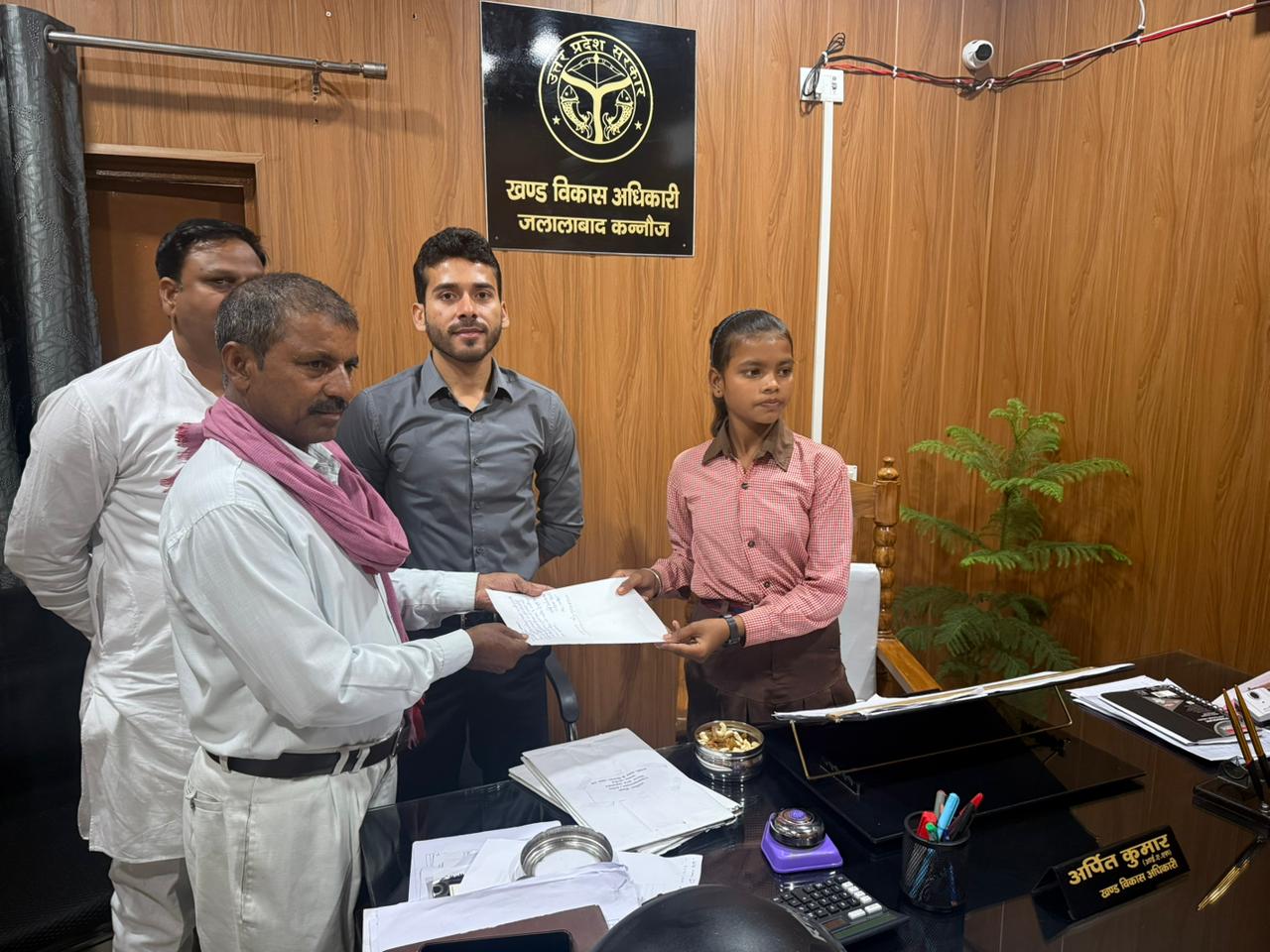 Kannauj : मिशन शक्ति 5.0 अभियान के तहत जनपद कन्नौज के विकास खंड जलालाबाद स्थित कंपोजिट विद्यालय, जलालाबाद की कक्षा 8वीं की छात्रा नैना को एक दिन के लिए सांकेतिक खंड विकास अधिकारी (बीडीओ), जलालाबाद बनाया गया। एक दिन की बीडीओ बनी नैना ने जनता दर्शन में आए फरियादियों की समस्याएं सुनीं और संबंधित अधिकारियों को निस्तारण के निर्देश दिए।