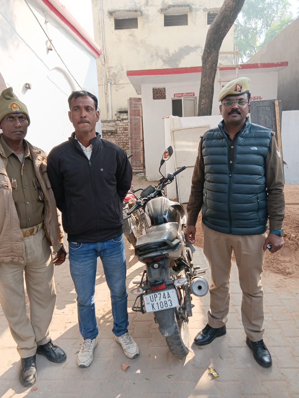 पुलिस ने मुखबिर की सूचना पर ग्राम सौसरापुर, थाना गुरसहायगंज में चल रहे उर्स मेले से अभियुक्त महफूज पुत्र हवलदार, निवासी ग्राम अहमदपुर रौनी, थाना कोतवाली कन्नौज को गिरफ्तार किया। अभियुक्त के कब्जे से लूटी गई मोटरसाइकिल टीवीएस राइडर (UP 74 AK 1083) एवं 3500 रुपये बरामद किए गए।