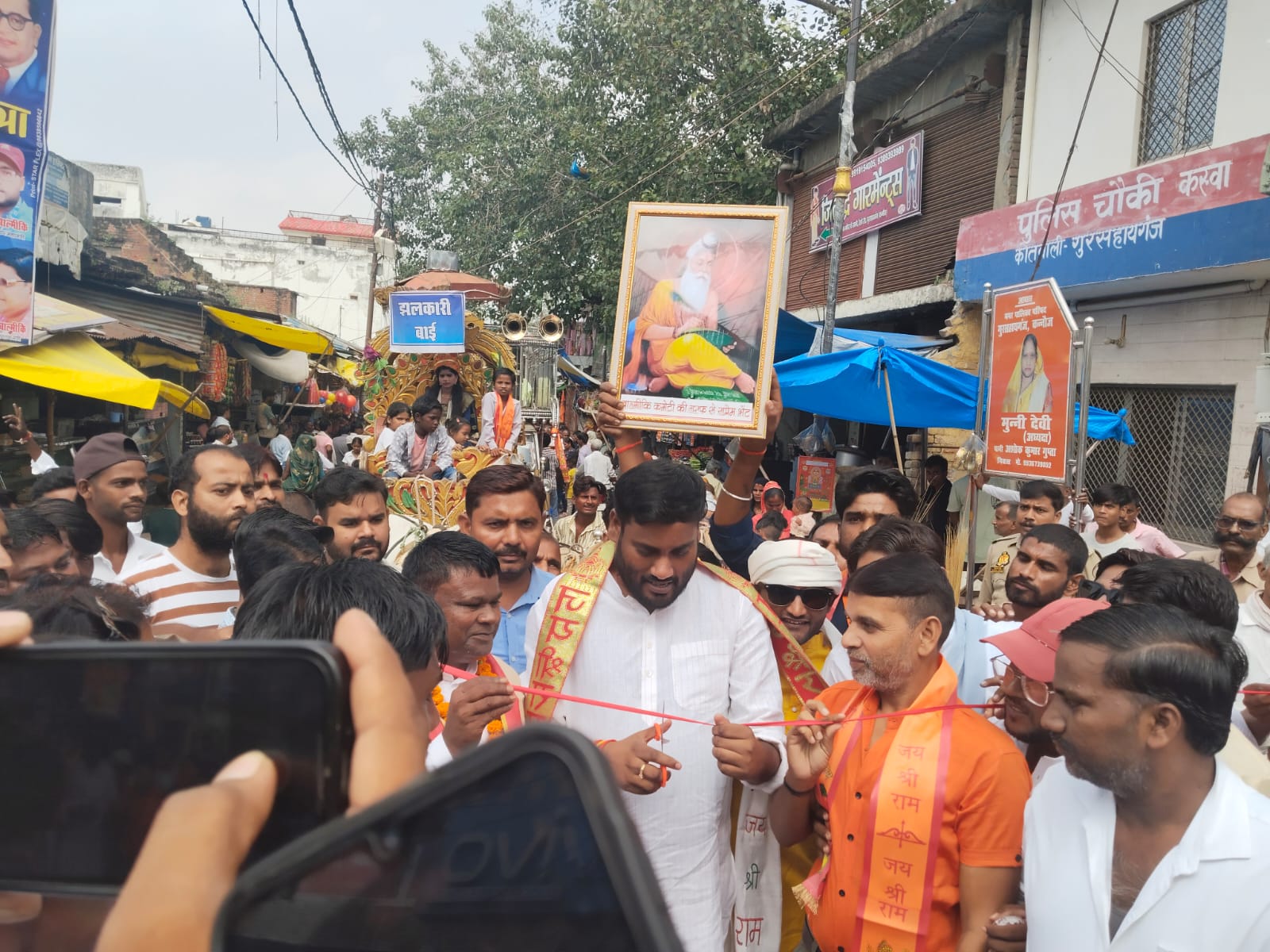 Gursahaiganj, Kannauj : कस्बा में मंगलवार को महर्षि बाल्मीकि की जयंती पर भव्य शोभायात्रा निकाली गई। जिसका कई स्थानों पर लोगों ने फूलों की वर्षा कर स्वागत किया।