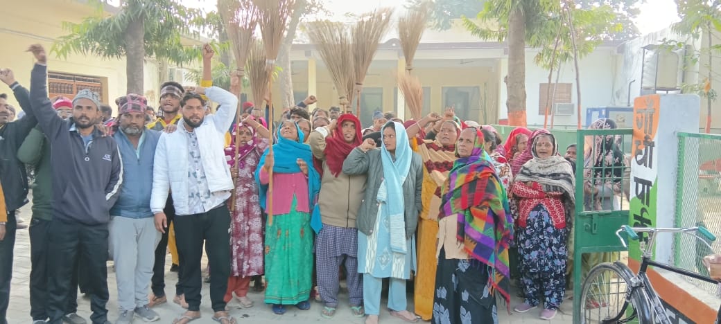 धक्का मुक्की की और कपड़े खींचे। इसके बाद नाराज तमाम सफाई कर्मी नगर पालिका पहुंचे और पुलिस के खिलाफ जमकर नारेबाजी की। तमाम सफाई कर्मी कार्रवाई की मांग को लेकर नगर पालिका में डटे हुए थे।