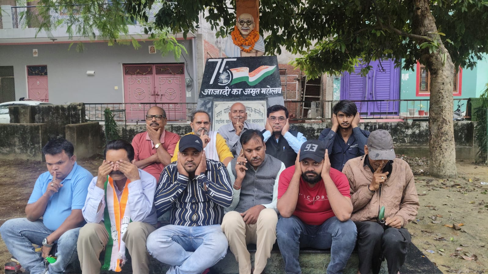 Kannauj : कांग्रेसियों का सांकेतिक धरना, गांधी प्रतिमा पुनः स्थापित करने की मांग