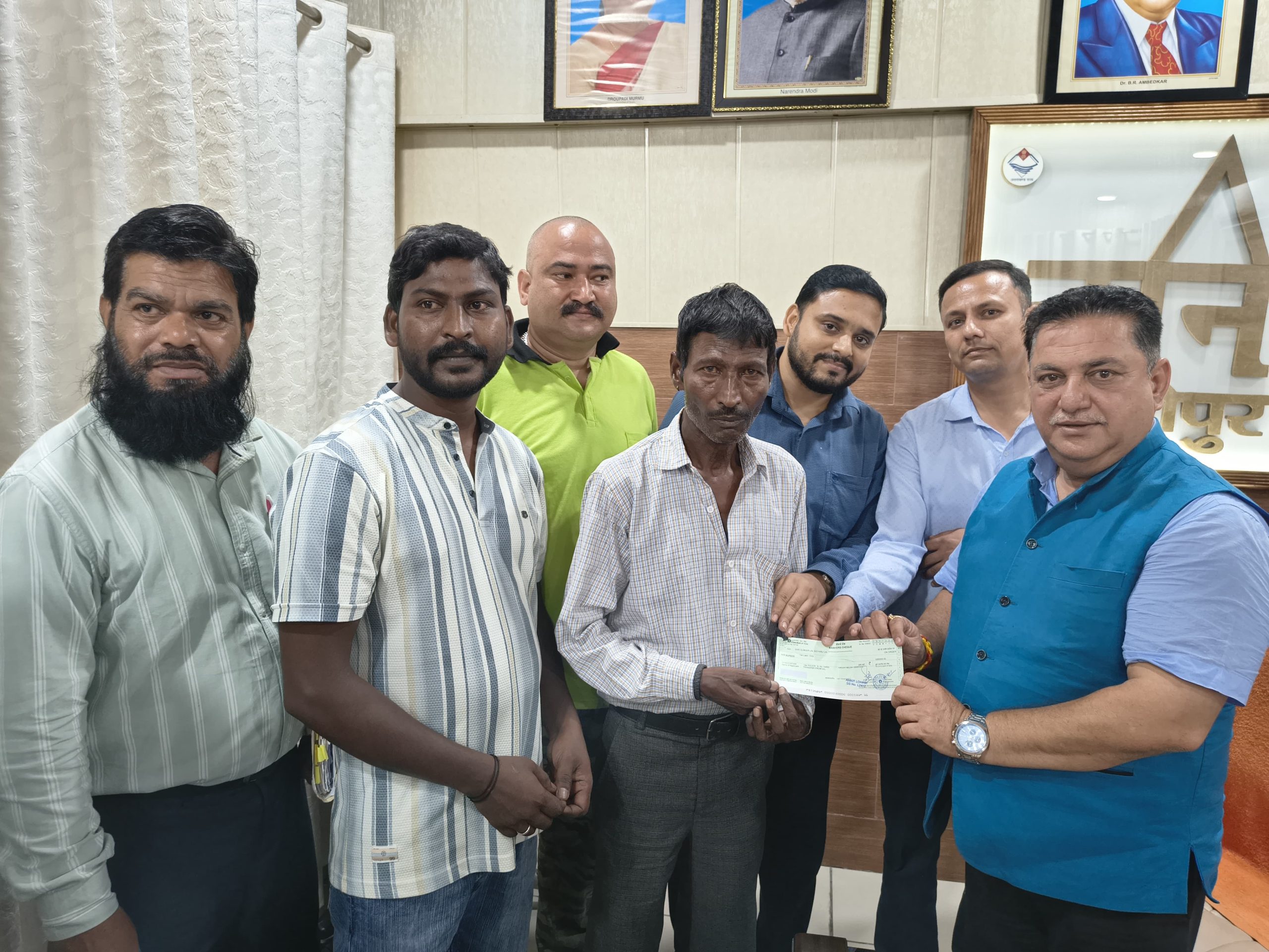 काशीपुर: कोविड ड्यूटी के दौरान जान गंवाने वाली महिला सफाई कर्मचारी के पति को महापौर ने सौंपा 10 लाख का चेक