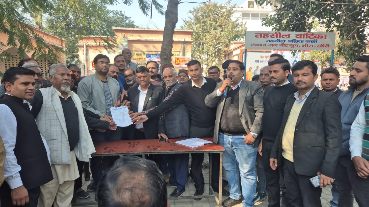 Palia, Lakhimpur Kheri : गरीबों के लिए आए सरकारी कंबलों के कथित घोटाले का मामला पलिया तहसील में लगातार तूल पकड़ता जा रहा है। 14 जनवरी की शाम उजागर हुए इस प्रकरण ने अब प्रशासन और अधिवक्ता संघ के बीच खुले टकराव का रूप ले लिया है। अधिवक्ताओं के कार्य बहिष्कार और धरना-प्रदर्शन के बीच गुरुवार को नगर व्यापार मंडल भी खुलकर अधिवक्ताओं के समर्थन में आ गया। व्यापार मंडल और अधिवक्ताओं ने संयुक्त रूप से तहसील परिसर से नगर क्षेत्र तक पैदल मार्च निकाला। इस दौरान प्रदर्शनकारियों ने “एसडीएम मुर्दाबाद” और “तहसील प्रशासन मुर्दाबाद” जैसे नारे लगाए। मार्च के दौरान लेखपाल संघ द्वारा दर्ज कराए गए मुकदमे को तत्काल वापस लेने और पूरे प्रकरण की निष्पक्ष जांच कराने की मांग की गई।