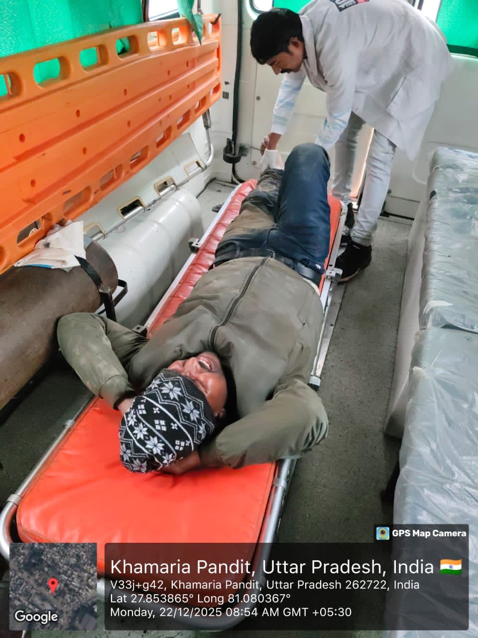 हादसे के दौरान सड़क से गुजर रहे मोटरसाइकिल सवार सतीश पुत्र नेकपाल, निवासी मुशियाना, थाना लहरपुर, जनपद सीतापुर, बाइक संख्या UP34 BL 3995, टक्कर की चपेट में आकर घायल हो गए। सूचना मिलने पर थाना प्रभारी निरीक्षक ओम प्रकाश राय पुलिस टीम के साथ मौके पर पहुंचे और एंबुलेंस की सहायता से घायल को सीएचसी खमरिया भिजवाया गया। टक्कर के बाद बस सड़क से नीचे उतरकर रुक गई, हालांकि बस में सवार यात्रियों को कोई चोट नहीं आई।