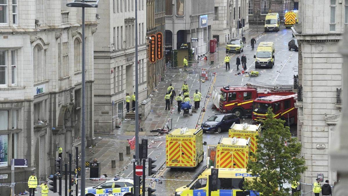 लिवरपूल, लंदन। लिवरपूल में फुटबाल प्रशंसकों पर कार चढ़ाने के आरोप में एक व्यक्ति को सोमवार को गिरफ्तार किया गया है। यह घटना तब हुई जब प्रशंसक अपने शहर की फुटबाल टीम की प्रीमियर लीग चैंपियनशिप में मिली सफलता का जश्न मना रहे थे।