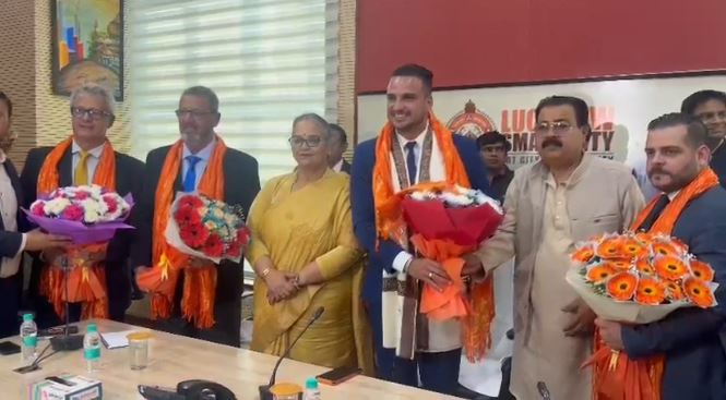 Lucknow : ब्राज़ील के साओ पाउलो राज्य के पिकेटे शहर के मेयर रोमिन्हो आज लखनऊ पहुंचे। अमौसी एयरपोर्ट पर लखनऊ की महापौर ने उनका भव्य और गर्मजोशी से स्वागत किया। इस मौके पर ब्राज़ील से आए प्रतिनिधिमंडल के सदस्य और वहां के पार्षद भी मौजूद रहे।