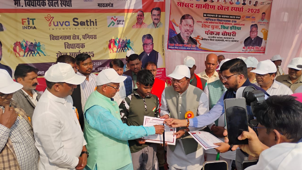 Shyamdeurawan, Maharajganj : सोमवार को महंत अवैद्यनाथ मिनी स्टेडियम,श्यामदेउरवां में सांसद-विधायक खेल स्पर्धा का भव्य आगाज़ किया गया। कार्यक्रम का उद्घाटन केंद्रीय वित्त राज्यमंत्री पंकज चौधरी ने फीता काटकर और खिलाड़ियों से परिचय प्राप्त कर किया। मंत्री के आगमन पर खिलाड़ियों और स्थानीय लोगों ने गर्मजोशी से स्वागत किया। कार्यक्रम के उद्घाटन समारोह में क्षेत्र के युवा खिलाड़ियों में खास उत्साह देखने को मिला।