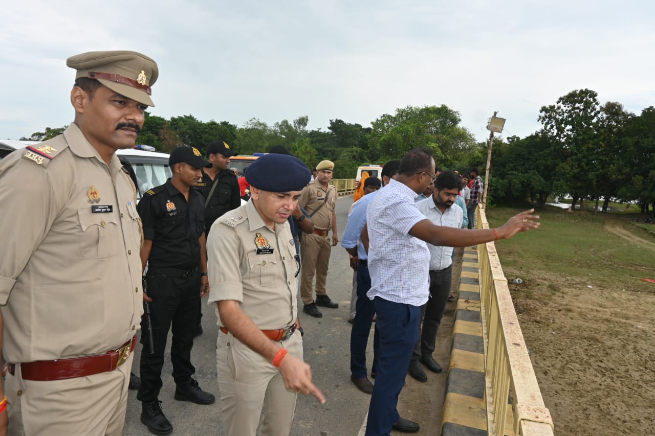 Maharajganj : आगामी मूर्ति विसर्जन कार्यक्रम को ध्यान में रखते हुए जिलाधिकारी संतोष कुमार शर्मा एवं पुलिस अधीक्षक सोमेंद्र मीणा ने थाना बृजमनगंज क्षेत्र के शिवालय पोखरा का संयुक्त निरीक्षण किया गया। यह निरीक्षण कार्यक्रम को सुरक्षित, व्यवस्थित और शांतिपूर्ण ढंग से संपन्न कराने के उद्देश्य से किया गया।निरीक्षण के दौरान अधिकारियों ने स्थल की समग्र व्यवस्था का जायजा लिया। जलाशय की सफाई, बैरिकेडिंग, यातायात नियंत्रण, और भीड़ प्रबंधन जैसे महत्वपूर्ण पहलुओं की समीक्षा की गई। जिलाधिकारी ने संबंधित विभागों को निर्देशित किया कि सभी तैयारियां समयबद्ध और पूर्ण रूप से सुनिश्चित की जाएं ताकि श्रद्धालुओं को किसी प्रकार की असुविधा न हो।