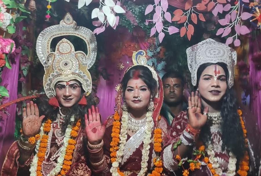 Brijmanganj, Maharajganj : नगर पंचायत बृजमनगंज में आयोजित रामलीला के दूसरे दिन मंगलवार को रावण का वध कर अपने भाई भरत से मिलने गए प्रभु श्रीराम व सीता माता का नगरवासियों ने अभिनंदन किया। नगर पंचायत स्थित ठाकुर द्वारा पूजन अर्चन के बाद देर शाम प्रभु श्रीराम के डोल को नगर भ्रमण के लिए निकाल कर भरत मिलाप मेला की शुरुआत की गई।इस दौरान फरेंदा के पूर्व विधायक बजरंग बहादुर सिंह ने मौके पर पहुंच कर प्रभु श्रीराम व सीता मईया की पूजा अर्चना की। प्रभु श्रीराम के डोल को पूरे नगर में घुमाया गया।