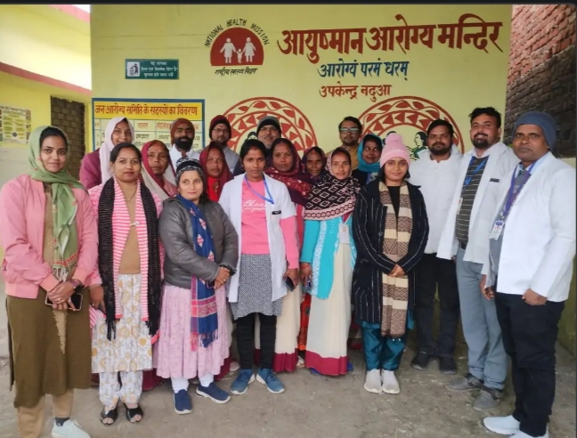 Chowk Bazaar, Maharajganj : मिठौरा ब्लॉक क्षेत्र के नदुआ बाजार स्थित आयुष्मान आरोग्य मंदिर का भारत सरकार की नेशनल क्वालिटी एश्योरेंस स्टैंडर्ड्स (NQAS) टीम द्वारा मंगलवार को वर्चुअल निरीक्षण किया गया। यह निरीक्षण केंद्र को एनक्यूएएस प्रमाणीकरण प्रदान किए जाने की प्रक्रिया के अंतर्गत किया गया।