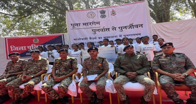 सुकमा : छत्तीसगढ़ के सुकमा जिले में नक्सल विरोधी अभियान को बड़ी सफलता मिली है। जिले में सक्रिय 26 नक्सलियों ने पुलिस के सामने आत्मसमर्पण किया है। इनमें से 13 नक्सलियों पर कुल 65 लाख रुपये का इनाम घोषित था। सुकमा के पुलिस अधीक्षक किरण चव्हाण ने बताया कि आत्मसमर्पण करने वालों में सात महिला नक्सली भी शामिल हैं, जिन्होंने राज्य सरकार की “पूना मार्गेम” (घर वापसी) पहल से प्रभावित होकर मुख्यधारा में लौटने का फैसला किया।