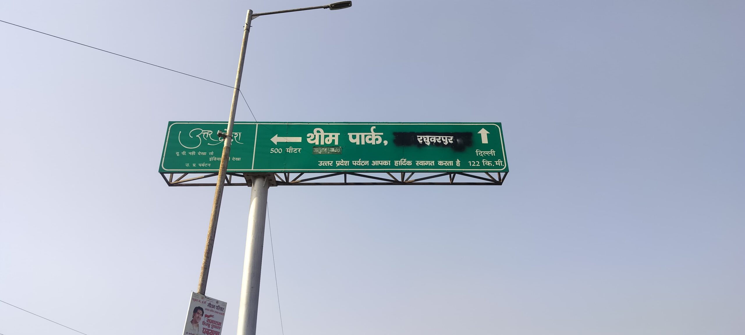 चौमुहां, मथुरा। नेशनल हाईवे 19 पर स्थित ब्लॉक चौमुहां के गांव अकबरपुर के नाम को कथित तौर पर अज्ञात लोगों ने बदल दिया है। गांव और हाईवे के किनारे लगे सरकारी सूचना बोर्डों पर स्याही या पेंट से ‘अकबरपुर’ को मिटाकर उसकी जगह नया नाम ‘रघुवरपुर’ लिख दिया गया है।