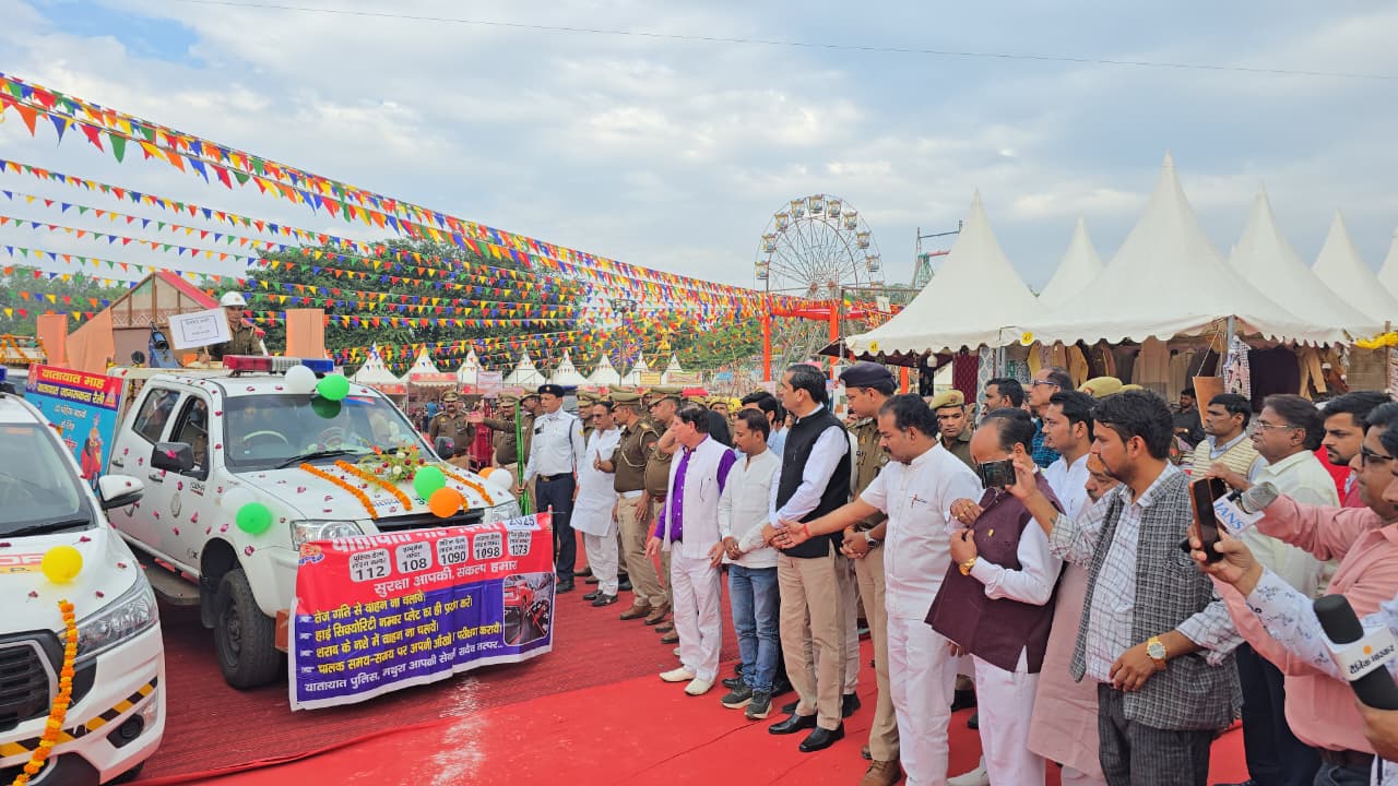 Mathura : चार नवंबर को जनपद में यातायात माह का विधिवत शुभारंभ हुआ। धौली प्याऊ स्थित रेलवे ग्राउंड में आयोजित ब्रज रज उत्सव 2025 कार्यक्रम स्थल पर यातायात माह के शुभारंभ के अवसर पर भव्य कार्यक्रम का आयोजन किया गया।