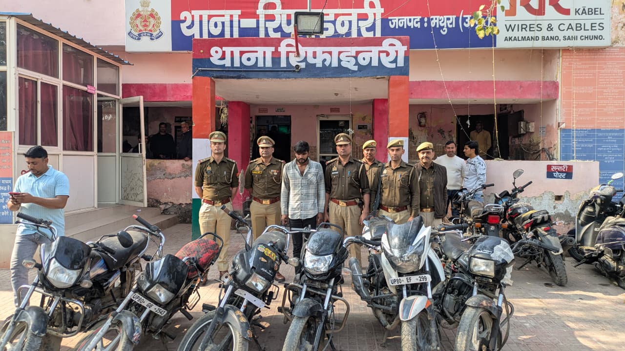 पुलिस ने उसकी निशानदेही पर कुल छह चोरी की मोटरसाइकिलें बरामद कीं, जो मथुरा, आगरा, हाथरस और राजस्थान के अलग-अलग थानों से चोरी की गई थीं। घटना बीती रात की है, जब पुलिस टीम नियमित चेकिंग कर रही थी। इसी दौरान मोटरसाइकिल पर जा रहे युवक को रोककर पूछताछ की गई। उसकी गतिविधि संदिग्ध लगने पर कड़ाई से पूछताछ की गई, जिसके बाद उसने कई स्थानों से मोटरसाइकिल चोरी करने की बात स्वीकार की।