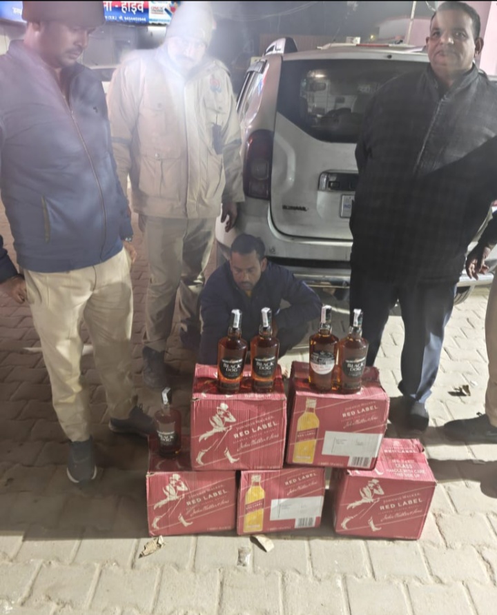 रात्रि में चेकिंग के दौरान राष्ट्रीय राजमार्ग 19 पर एटीवी के सामने हरियाणा की ओर से आ रही सफेद रंग की डस्टर कार को रोका गया। जांच के दौरान कार की डिग्गी में बने गुप्त चैंबर से अवैध रूप से तस्करी कर ले जाई जा रही 60 बोतल रेड लेबल तथा 06 बोतल ब्लैक डॉग ब्रांड की शराब, जो केवल हरियाणा में बिक्री हेतु थी, बरामद की गई।