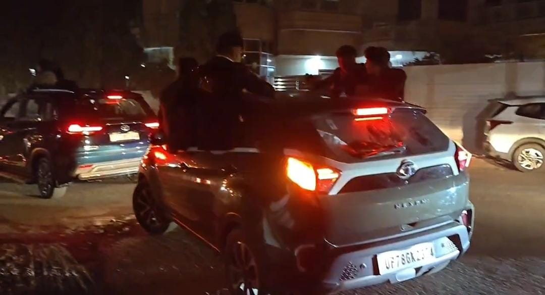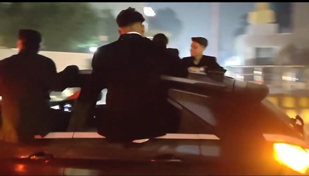 Moradabad : मुरादाबाद में कानून व्यवस्था और ट्रैफिक नियमों की खुलेआम धज्जियां उड़ाने का सनसनीखेज मामला सामने आया है सोशल मीडिया पर वायरल हो रहे वीडियो में साफ देखा जा सकता है कि दर्जनों युवक तेज रफ्तार में दौड़ती कई कारों की छतों बोनट और खिड़कियों पर लटककर खतरनाक स्टंट कर रहे हैं यह नजारा किसी फिल्मी सीन जैसा नहीं बल्कि हकीकत है जहां चंद रईसजादे अपनी शान दिखाने के चक्कर में खुद की और दूसरों की जान खतरे में डालते नजर आ रहे हैं वीडियो में कुछ युवक कार की खिड़की से बाहर लटकते हुए सड़क पर हाथ लहराते दिखाई दे रहे हैं तो कुछ कार की छत पर खड़े होकर चलते वाहनों के बीच संतुलन बनाते नजर आते हैं।