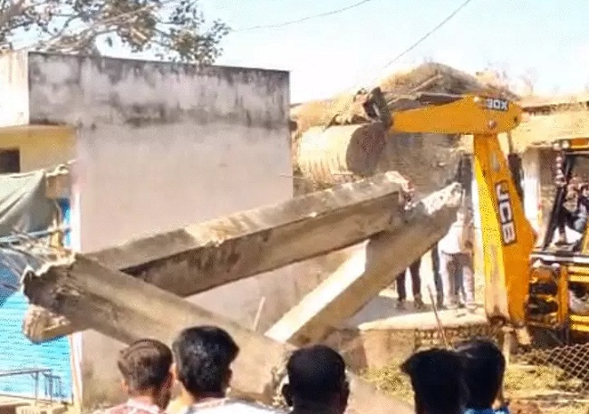 इसके बाद मकान का ताला तोड़कर पंचायत ने उसे अपने कब्जे में लिया। मौके पर मौजूद सरपंच कोकिला चौहान के बेटे ने दीवारों पर भगवा रंग लगवा दिया। इस पर अधिकारियों ने आपत्ति की। इसके बाद गुलाबी रंग से पुताई कराई गई।