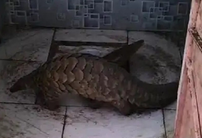 बताया गया है कि ग्रामीण दूलेसिंह दायमा के मकान में रविवार रात को पैंगोलिन दिखाई दिया था। तब ग्रामीण ने उसे बिना नुकसान पहुंचाए शौचालय में बंद कर दिया था। सुबह रतलाम जनपद अध्यक्ष प्रतिनिधि विशाल जायसवाल जो कि गांव सिमलावदा के ही निवासी है, उन्हें सूचना दी। जब गांव में इस जीव के होने की जानकारी मिली तो ग्रामीण इसे देखने पहुंचे। इसके बाद वन विभाग को सूचना दी। वन विभाग की टीम ने दायमा के घर में शौचालय में पैंगोलिन को रेस्क्यू कर पिंजरे में कैद किया।