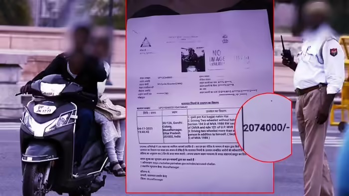 उत्तर प्रदेश के मुजफ्फरनगर जिले से ट्रैफिक चालान का एक हैरान करने वाला मामला सामने आया है। मुजफ्फरनगर ट्रैफिक पुलिस ने एक स्कूटी चालक का 20 लाख 74 हजार रुपये का भारी-भरकम चालान काट दिया। इसके पीछे चालक के पास ड्राइविंग लाइसेंस, कागजात और हेलमेट न होने की वजह बताई गई है। हालांकि, इतने बड़े चालान से सोशल मीडिया पर भी बहस छिड़ गई है। वहीं, पुलिस विभाग में भी हड़कंप मच गया।
