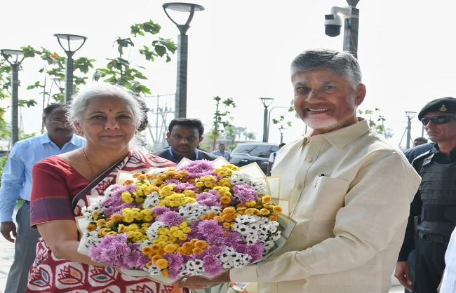 आंध प्रदेश के दौरे पर गईं वित्त मंत्री निर्मला सीतारमण और आंध्र प्रदेश के मुख्यमंत्री एन. चंद्रबाबू नायडू ने अमरावती सीड एक्सेस रोड पर सार्वजनिक क्षेत्र के बैंकों और इंश्योरेंस कंपनियों के ऑफिस का शिलान्यास मिलकर शिलान्यास किया। इस अवसर पर सीतारमण ने उपस्थित लोगों को संबोधित भी किया।