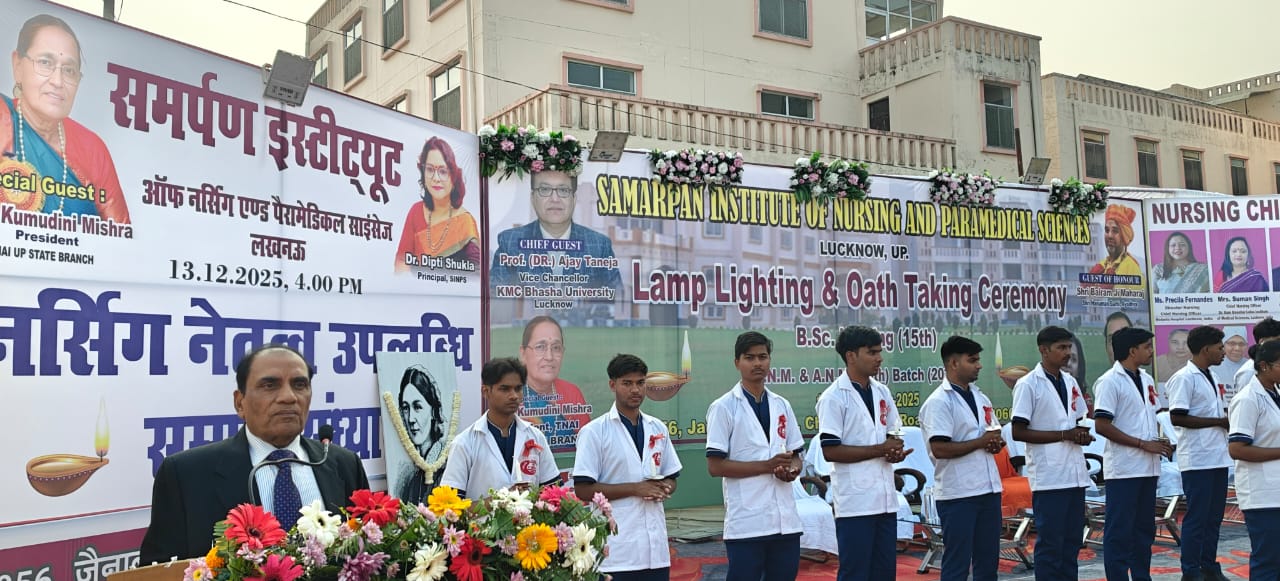 बाराबंकी के समर्पण इंस्टीट्यूट ऑफ नर्सिंग एंड पैरामेडिकल साइंसेज, देवा-चिनहट रोड स्थित गोयला परिसर में प्रत्येक वर्ष की भांति इस वर्ष भी भव्य लैम्प लाइटिंग एवं ओथ टॉकिंग (शपथ) समारोह का आयोजन किया गया।