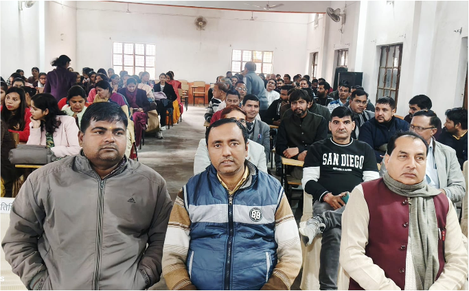 नूरपुर , बिजनौर। शिक्षा संस्कृति उत्थान न्यास मुरादाबाद शिक्षा केंद्र के तत्वाधान में आयोजित एक दिवसीय शिक्षक गोष्ठी कार्यक्रम का आयोजन धर्मवीर डिग्री कॉलेज नूरपुर में किया गया। जिसमें उत्तर क्षेत्र के शिक्षा संस्कृति उत्थान न्यास प्रभारी प्रोफेसर जगराम सिंह ने शिक्षकों से बच्चों को शिक्षा प्रदान करते समय सर्वप्रथम मित्रता भाव का होना अति आवश्यक है संस्कृति हमें मूल्य, विश्वास जीवन शैली सिखाती है जबकि शिक्षा सर्वांगीण विकास के समय का निर्माण करती हैं व चरित्र निर्माण होता है शिक्षा प्रदान करते नूरपुर , बिजनौर । शिक्षा संस्कृति उत्थान न्यास मुरादाबाद शिक्षा केंद्र के तत्वाधान में आयोजित एक दिवसीय शिक्षक गोष्ठी कार्यक्रम का आयोजन धर्मवीर डिग्री कॉलेज नूरपुर में किया गया ।जिसमें उत्तर क्षेत्र के शिक्षा संस्कृति उत्थान न्यास प्रभारी प्रोफेसर जगराम सिंह ने शिक्षकों से बच्चों को शिक्षा प्रदान करते समय सर्वप्रथम मित्रता भाव का होना अति आवश्यक है संस्कृति हमें मूल्य, विश्वास जीवन शैली सिखाती है जबकि शिक्षा सर्वांगीण विकास के समय का निर्माण करती हैं व चरित्र निर्माण होता है शिक्षा प्रदान करते समय सदाचार अनुशासन का पाठ, करुणा का पाठ, मधुर संवाद बच्चों की भावना को समझना तथा कभी भी तानाशाही नहीं बनना सत्य ईमानदारी, श्रद्धा विनम्रता सरलता मेहनत आत्म नियंत्रण आदर्श व्यक्तिव का होना अति आवश्यक है हम सभी को प्रतिदिन एकांत में रहकर आत्म निरीक्षण जरूर करें जहां कमी हो सुधार अवश्य करें इस अवसर पर सत्यवीर गुप्ता, कोमल सिंह यादव, पुरन सिंह ,सोमवीर ,दिनेश चौहान लोकेंद्र चौधरी समेत क्षेत्र के अनेक स्कूलों से शिक्षक प्रधानाचार्य प्रबंधकों ने भाग लिया संचालन मनोज कुमार ने किया।समय सदाचार अनुशासन का पाठ, करुणा का पाठ, मधुर संवाद बच्चों की भावना को समझना तथा कभी भी तानाशाही नहीं बनना सत्य ईमानदारी, श्रद्धा विनम्रता सरलता मेहनत आत्म नियंत्रण आदर्श व्यक्तिव का होना अति आवश्यक है हम सभी को प्रतिदिन एकांत में रहकर आत्म निरीक्षण जरूर करें जहां कमी हो सुधार अवश्य करें इस अवसर पर सत्यवीर गुप्ता, कोमल सिंह यादव, पुरन सिंह ,सोमवीर ,दिनेश चौहान लोकेंद्र चौधरी समेत क्षेत्र के अनेक स्कूलों से शिक्षक प्रधानाचार्य प्रबंधकों ने भाग लिया संचालन मनोज कुमार ने किया।