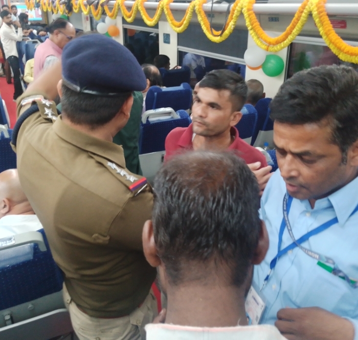 रेलवे सुरक्षा बल (आरपीएफ) के उप निरीक्षक बबलू कुमार ने बताया कि वंदे भारत ट्रेन के सफर में यात्रा कर रहे यात्रियों की सुरक्षा के लिए हर बोगी में आरपीएफ की तैनाती है। इस दौरान कुछ लोग सी 3 बोगी में चले आए, जिसमें एक व्यक्ति ने कोई नशा कर रखा था। सभी बिना टिकट लोगों को चेतावनी देकर ट्रेन से उतारा गया है। एक व्यक्ति अपने परिवार के साथ भी था, जिसे भी अगले स्टेशन पर उतरने के लिए कहा गया।