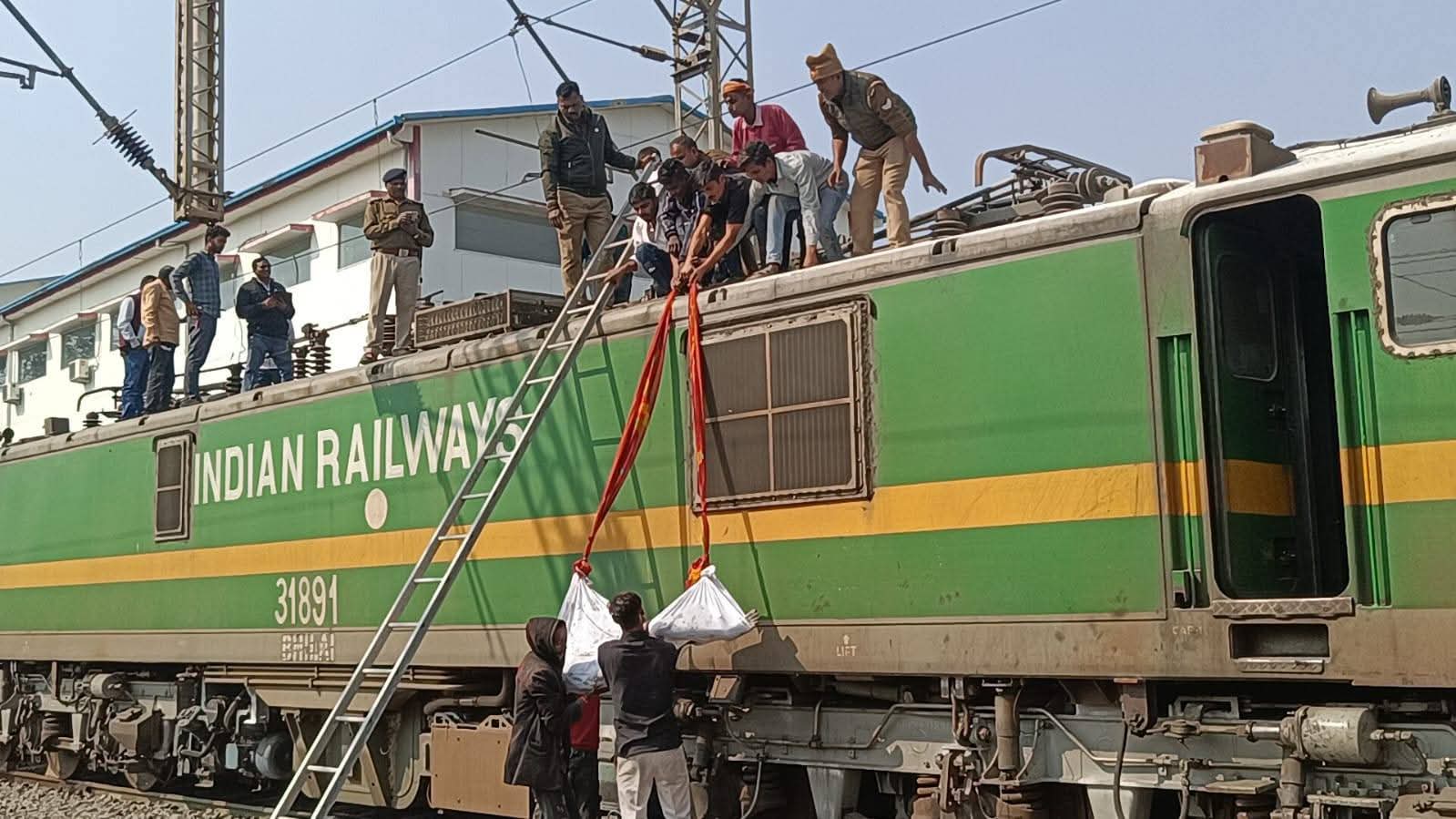 आरपीएफ और जीआरपी के जवानों ने सीढ़ियों की मदद से इंजन की छत तक पहुँच बनाई। झुलसे हुए शव को नीचे उतारने में लगभग आधे घंटे का समय लगा।