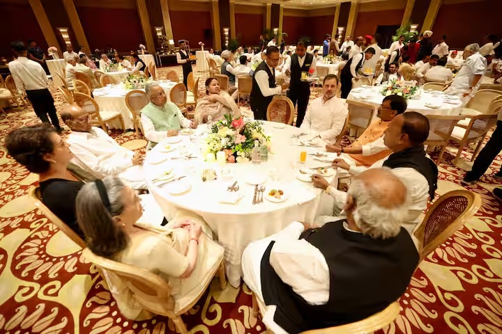 दिल्ली के होटल ताज पैलेस में ये डिनर पार्टी आयोजित की गई, जिसमें कांग्रेस संसदीय दल की अध्यक्ष सोनिया गांधी और लोकसभा में नेता विपक्ष राहुल गांधी, सांसद प्रियंका गांधी समेत कांग्रेस के सभी सांसद शमिल हुए। इंडिया ब्लॉक में शामिल कई दूसरी पार्टियों के सांसद भी इस डिनर पार्टी में पहुंचे।