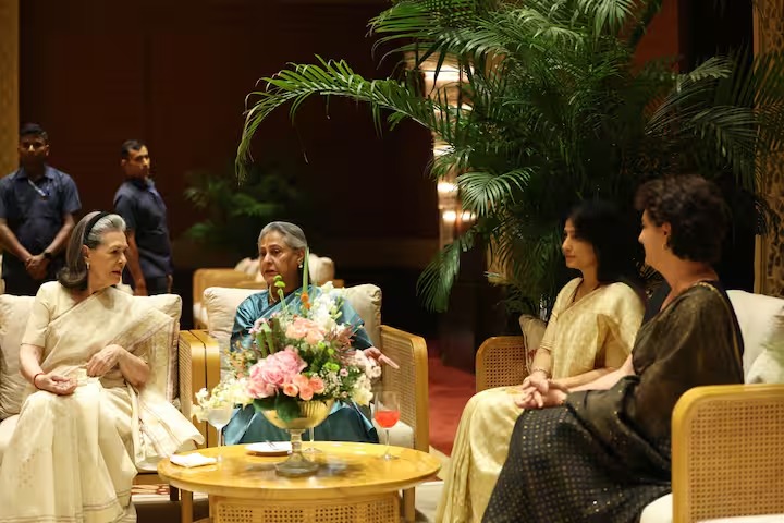 Dinner Politics : दिल्ली के होटल ताज पैलेस में आयोजित मल्लिकार्जु खरगे की डिनर पार्टी में कांग्रेस संसदीय दल की अध्यक्ष सोनिया गांधी, राहुल गांधी, प्रियंका गांधी समेत इंडिया ब्लॉक में शामिल कई पार्टियों के सांसद पहुंचे।