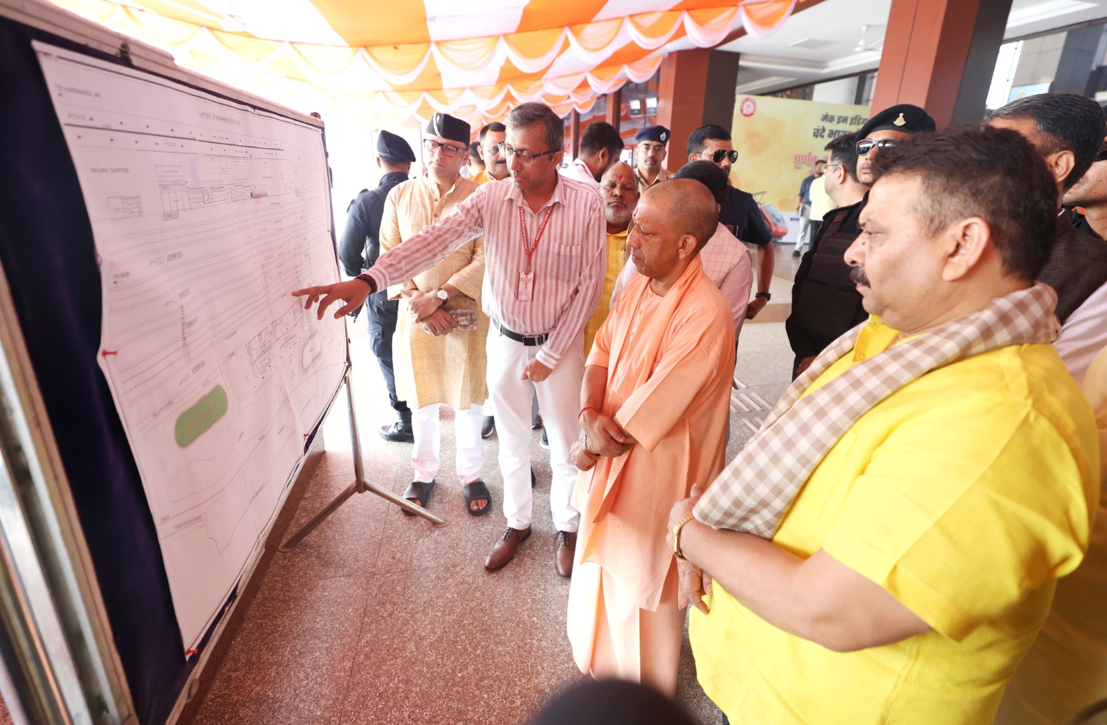 श्री काशी विश्वनाथ मंदिर से मुख्यमंत्री याेगी मड़ुवाडीह स्थित बनारस रेलवे स्टेशन पर पहुंचे। यहां उन्होंने प्रधानमंत्री मोदी के कार्यक्रम स्थल के साथ बरेका गेस्ट हाउस का भी निरीक्षण किया। रेलवे और जिला प्रशासन के अफसरों से प्रधानमंत्री मोदी की सुरक्षा व्यवस्था, आम यात्रियों को इससे परेशानी न हो इसके लिए मुख्यमंत्री ने खास तौर पर दिशा निर्देश दिया।