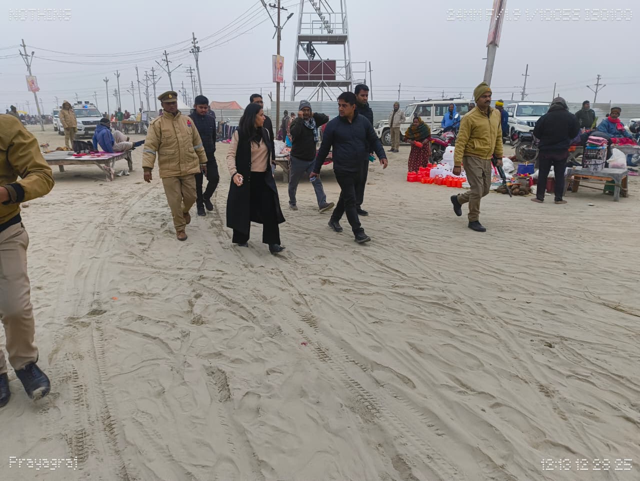 Prayagraj : मंडलायुक्त श्रीमती सौम्या अग्रवाल माघ मेला 2026 की सन्निकटता के दृष्टिगत मेला क्षेत्र के विभिन्न सेक्टरों का नगर आयुक्त सीलम साईं तेजा, उप मेलाधिकारी‚ माघ मेला तथा संंबंधित विभागों के अधीक्षण अभियन्ता व अधिशासी अभियन्ता के साथ भ्रमण किया गया। मंडलायुक्त ने भ्रमण के दौरान मेला क्षेत्र में तैयार कराये जा रहे विभिन्न घाटों को देखा गया और आवश्यक मूलभूत सुविधाएं⁄व्यवस्थाओं के संंबंध में जानकारी लेते हुए समस्त घाटों एवं आवश्यक मूलभूत व्यवस्थाओं को मेला प्रारम्भ होने के पूर्व समय से पूर्ण कराने के निर्देश दिए ।