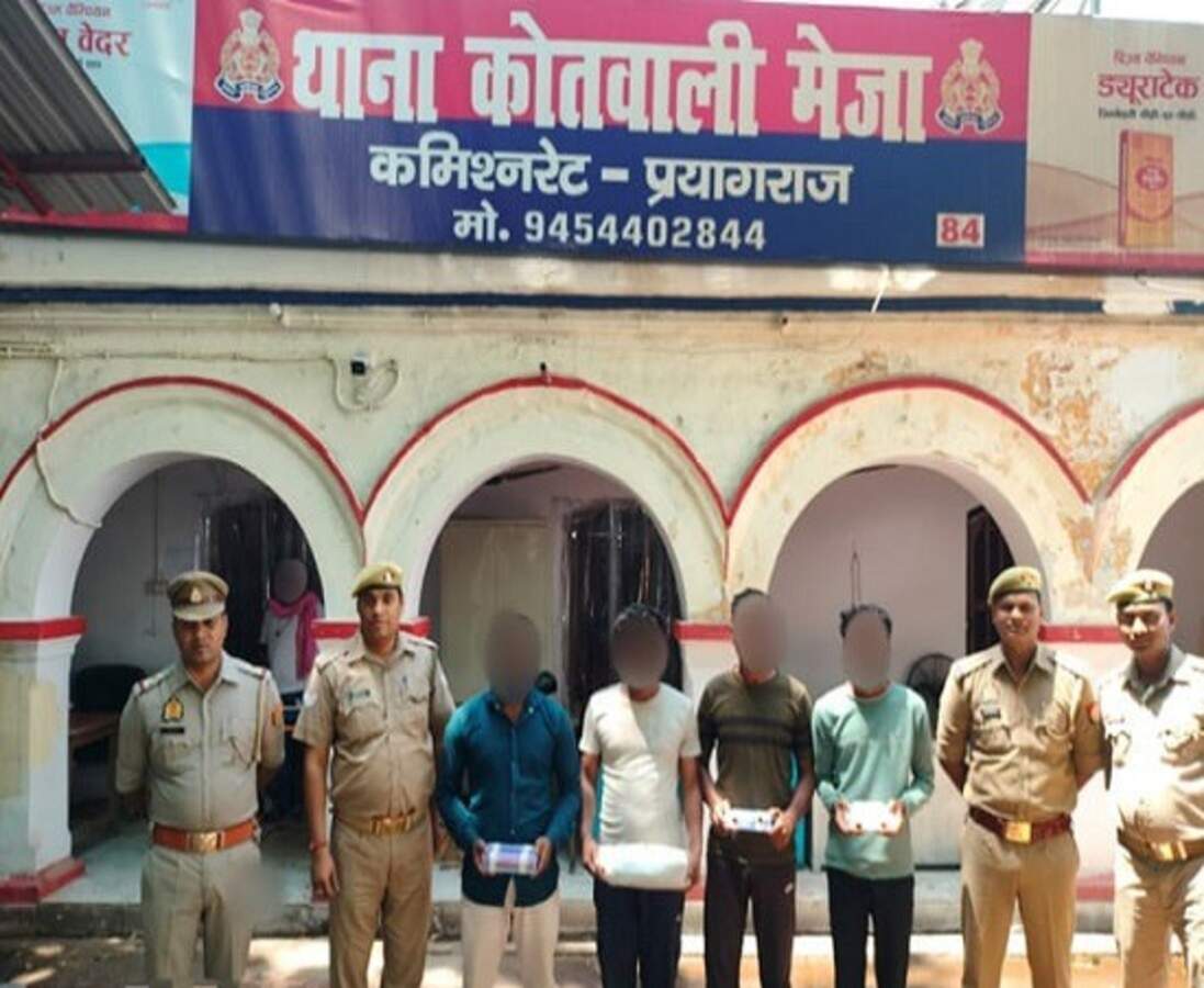 प्रयागराज। मेजा थाना एवं एसओजी की संयुक्त पुलिस टीम नकली सोना दिखाकर रूपए लूटने वाले गिरोह का खुलासा करते हुए रविवार को चार सदस्यों को गिरफ्तार किया। पुलिस टीम ने गिरोह के कब्जे से 15 हजार रुपये व 17 सिक्केनुमा मोहर (नकली सोना) बरामद किया। जबकि गिरोह में शामिल एक आरोपित की लाश जारी है। पकड़े गए आरोपितों के खिलाफ विधिक कार्रवाई करते हुए जेल भेज दिया।