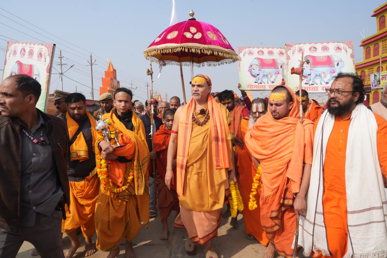 Prayagraj : माघ मेला में चल रही “गौ प्रतिष्ठा प्रेरणा यात्रा निरंतर गतिशील है दूसरे दिन अत्यंत सफल एवं जनजागरणकारी रही। यात्रा का शुभारंभ अक्षयवट मार्ग स्थित महात्यागी बाबा शिविर से हुआ। यात्रा के अंतर्गत कुल 170 शिविरों में पहुँचकर शंकराचार्य स्वामी अविमुक्तेश्वरानंद सरस्वती द्वारा संत समाज, तपस्वियों, संगठनों तथा श्रद्धालुओं से संवाद स्थापित किया गया तथा सनातन जीवन-पद्धति में गौ माता के स्थान, महत्व और संरक्षण पर विचार-विमर्श हुआ।