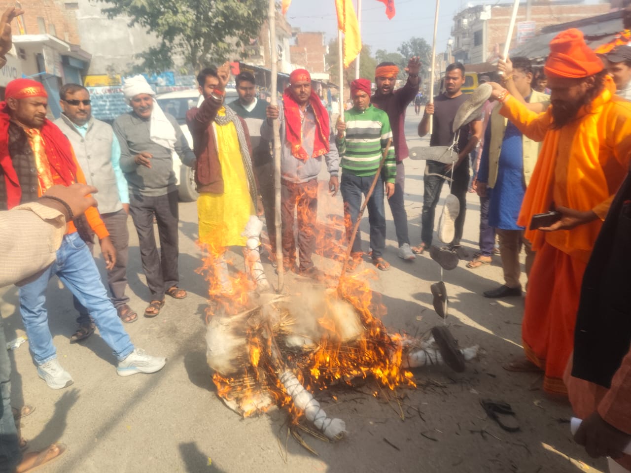 Prayagraj : मध्य प्रदेश कैडर के IAS अधिकारी संतोष वर्मा के विवादित और आपत्तिजनक बयान को लेकर रविवार को प्रयागराज के कौंधियारा अस्पताल तिराहे पर ब्राह्मण समाज का गुस्सा फूट पड़ा। बड़ी संख्या में जुटे लोगों ने संतोष वर्मा का पुतला दहन किया और उनके खिलाफ एफआईआर दर्ज कर निलंबित किए जाने की जोरदार मांग की।