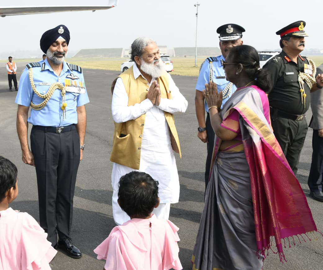 Chandigarh : भारत की राष्ट्रपति द्रौपदी मुर्मू का आज अंबाला वायुसेना स्टेशन आगमन पर हरियाणा सरकार की ओर से ऊर्जा, परिवहन एवं श्रम मंत्री श्री अनिल विज ने हार्दिक स्वागत एवं अभिनंदन किया।