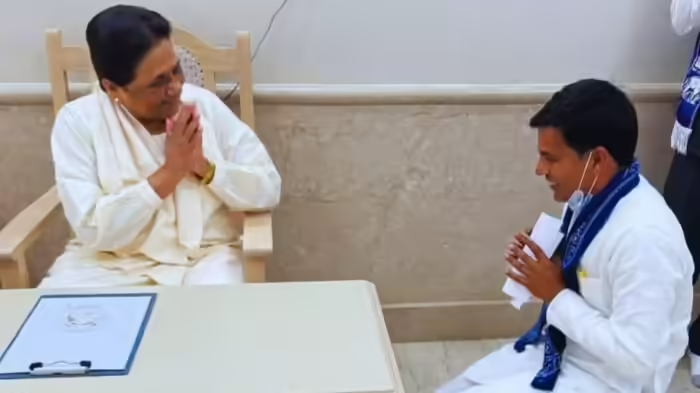 लखनऊ: उत्तर प्रदेश की पूर्व मुख्यमंत्री और बहुजन समाज पार्टी (बीएसपी) प्रमुख मायावती ने बिहार के रामगढ़ विधानसभा से इकलौते पार्टी विधायक सतीश कुमार सिंह यादव से महत्वपूर्ण मुलाकात की। इस दौरान सोशल मीडिया पर उनकी कुछ तस्वीरें वायरल हो रही हैं, जिसमें विधायक घुटनों के बल बैठे हैं और मायावती कुर्सी पर मुस्कुराते हुए दिख रही हैं।