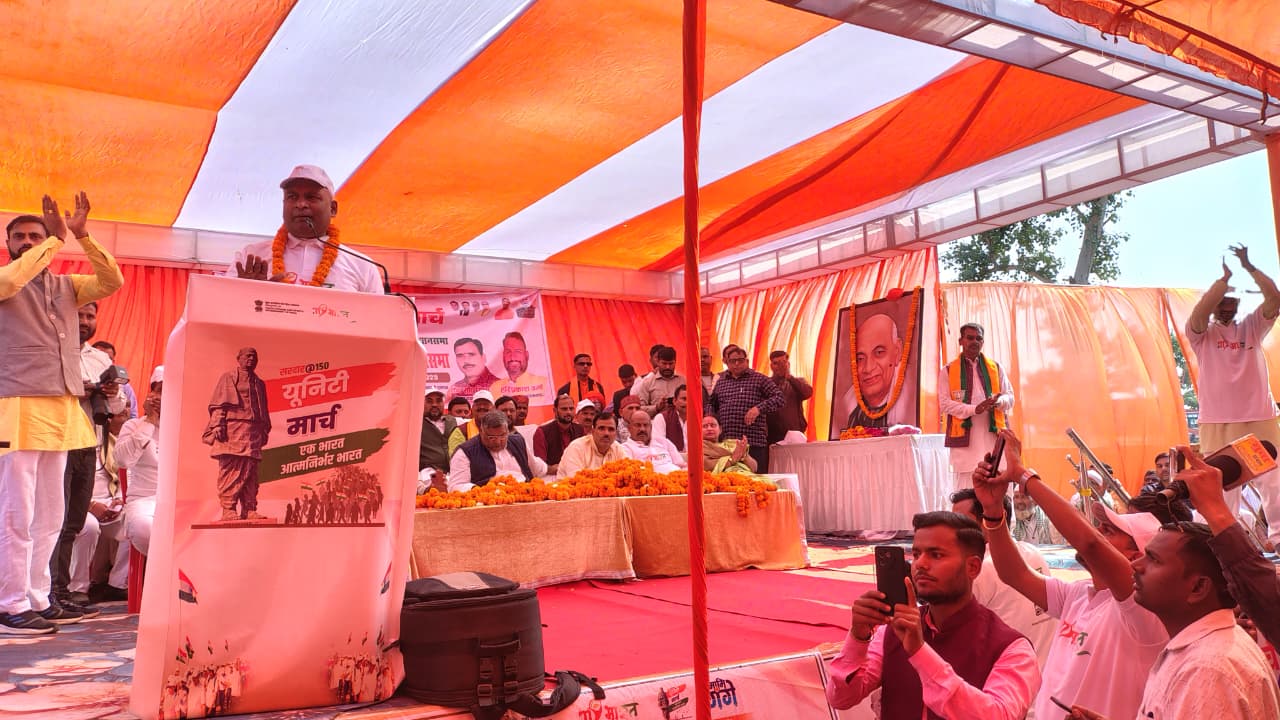 Shahjahanpur : यूपी के शाहजहांपुर के परशुरामपुरी (जलालाबाद) में बुधवार को भारत रत्न लौहपुरूष सरदार वल्लभभाई पटेल जी की 150वी जयंती के अंतर्गत सरदार 150 अभियान के तहत एक भारत, आत्मनिर्भर भारत थीम पर क्षेत्रीय अध्यक्ष ब्रज क्षेत्र दुर्विजय सिंह शाक्य, विधायक हरिप्रकाश वर्मा, जिलाध्यक्ष के सी मिश्रा के नेतृत्व में जलालाबाद के बहरिया से मिर्जापुर थाना होते हुए नखासा मैदान जरियनपुर तक भव्य यूनिटी मार्च निकाली गई व विशाल जनसभा भी आयोजित की गई। कार्यक्रम में मुख्य अतिथि के रूप में ब्रज क्षेत्र के क्षेत्रीय अध्यक्ष दुर्विजय सिंह शाक्य व विशिष्ट अतिथि जिलाध्यक्ष कृष्ण चंद्र मिश्र, विधायक जलालाबाद हरिप्रकाश वर्मा, पूर्व विधायक शरदवीर सिंह व वीरपाल सिंह, पूर्व जिलाध्यक्ष हरदोई सौरभ मिश्र, ब्लाक प्रमुख मिर्जापुर प्रियांशु रघुवंशी, ब्लॉक प्रमुख कलान,ब्लॉक प्रमुख जलालाबाद लता वर्मा, शिवप्रकाश वर्मा, ब्लॉक प्रमुख खुटार व जिला संयोजक नमित दीक्षित सहित अन्य गणमान्य अतिथिगण उपस्थित रहे।