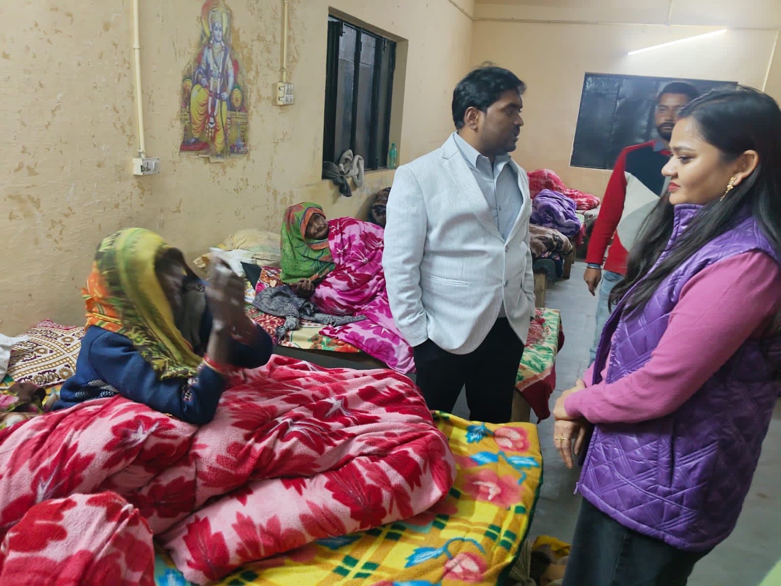 शनिवार देर रात अचानक अपर जिलाधिकारी वित्त अरविंद कुमार अपनी धर्म पत्नी सौम्या के साथ शीतलहर को देखते हुए सार्वजनिक स्थानों का भ्रमण करने पहुंचे जहां उन्होंने रेलवे स्टेशन पर जाकर निराश्रित और असहाय, दिव्यांजन को कंबल वितरित किया वहीं टाउन हाल में नगर निगम द्वारा संचालित रैन बसेरे का भी निरीक्षण किया। रैन बसेरे में साफ सुथरे बेड बिस्तर की व्यवस्था की गई है। रैन बसेरे में रुकी हुई एक बुजुर्ग महिला से हाल लेने पर पता चला कि वह बहुत बीमार है और उसने एक टैबलेट अपनी साड़ी में बांध रखी थी और उसे दिखाते ही वो रोते हुए बोली साहब कई दिन से तबियत खराब चल रही है, इलाज कराने के लिए पैसा नहीं है।