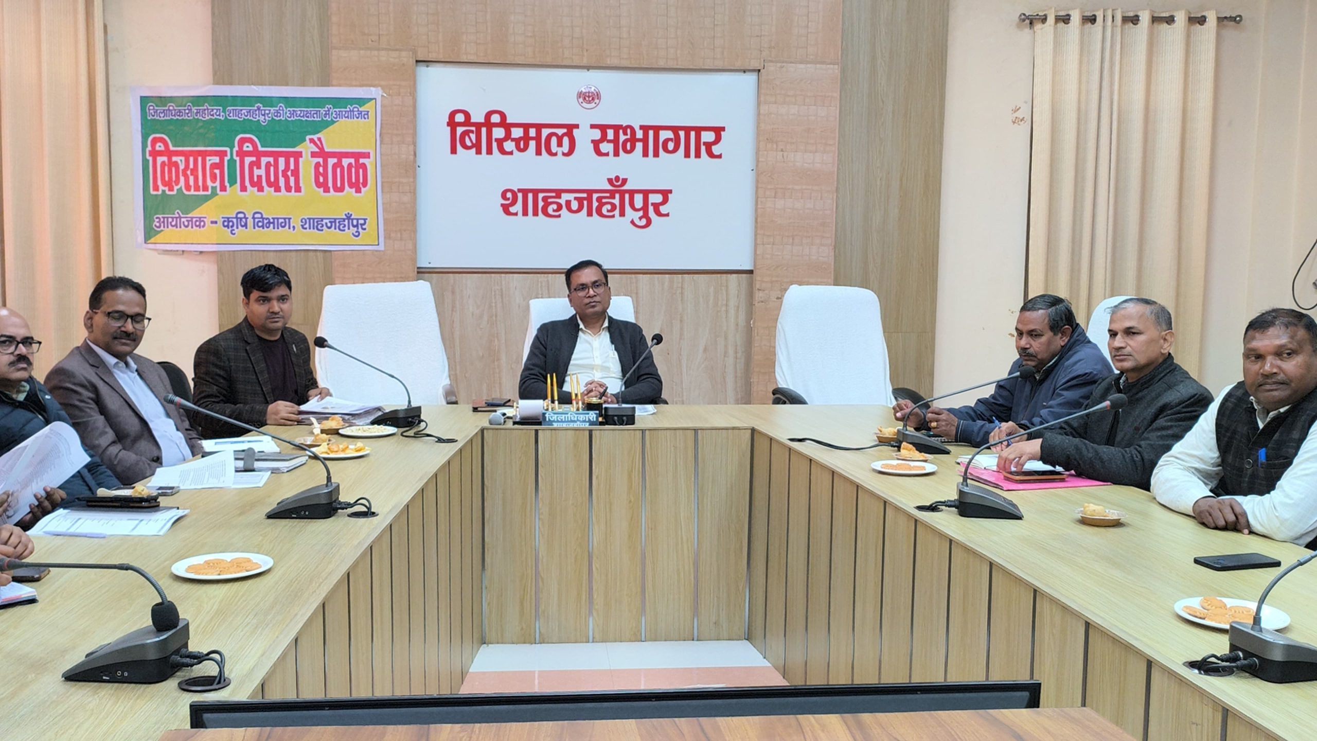 Shahjahanpur : यूपी के शाहजहांपुर में जिलाधिकारी धर्मेन्द्र प्रताप सिंह की अध्यक्षता में बुधवार को किसान दिवस बैठक का आयोजन कलेक्ट्रेट बिस्मिल सभागार में किया गया। बैठक में कृषि उप निदेशक पुरूषोत्तम कुमार मिश्र द्वारा विगत किसान दिवस की बैठक में किसानों द्वारा उठायी गयी, समस्याओं के निस्तारण के प्रगति के विषय में अवगत कराया। किसान दिवस में कृषकों ने अपनी-अपनी समस्याओं से अधिकारियों को अवगत कराया।