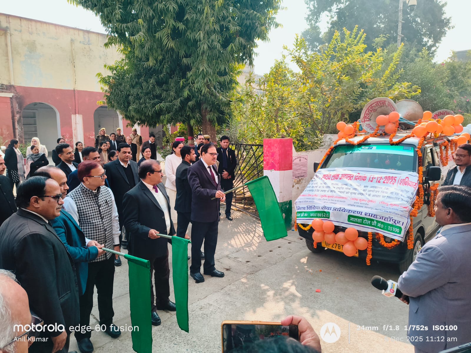 Shahjahanpur : यूपी के शाहजहांपुर में शनिवार को जनपद न्यायाधीश/अध्यक्ष जिला विधिक सेवा प्राधिकरण विष्णु कुमार शर्मा के निर्देशानुसार, जिला विधिक सेवा प्राधिकरण के तत्वावधान में 13 दिसंबर को होने वाली राष्ट्रीय लोक अदालत के प्रचार–प्रसार हेतु प्रचार वाहन को हरी झंडी दिखाकर रवाना किया गया।
